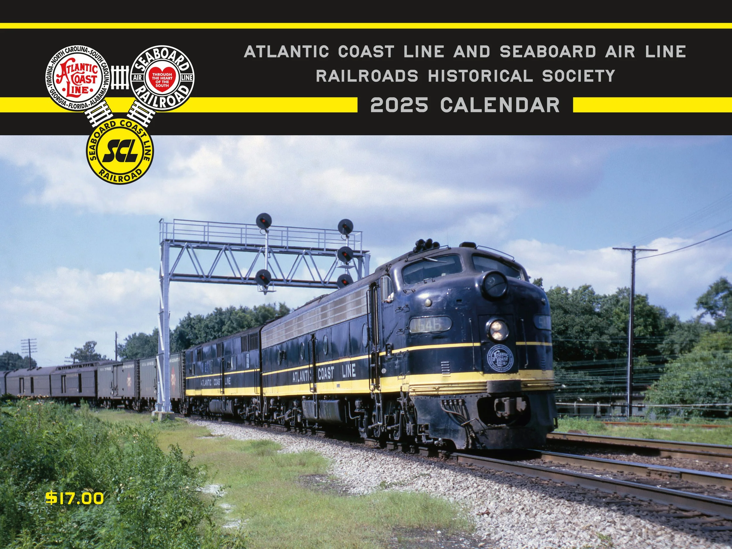 The ACL & SAL HS 2025 calendar has arrived and is ready to ship. This year's edition is another collection of 14 historic and colorful images (plus two bonus photos) documenting ACL, SAL, and SCL trains and equipment, complete with detailed captions and history dates. Don't miss getting your copy - our press run is limited - and order extras for gifts. Our price remains $17 each plus shipping/handling - order now, catalog C-25, from our online store below. Enjoy, and thanks for your support!